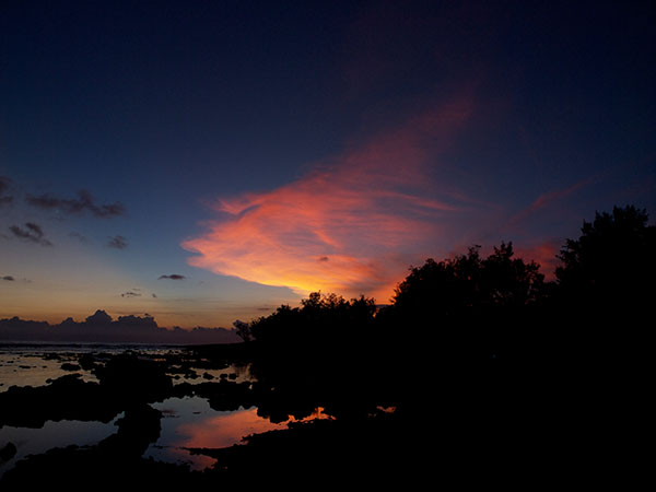 珊瑚礁就已經夠難走了,尤其是在天色漸暗的時間,跳上跳下是件很危險的動作。