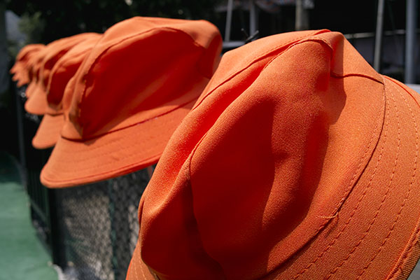 剛好幼稚園今天洗學童的帽子。趁著中午的時候拿出來曬太陽。