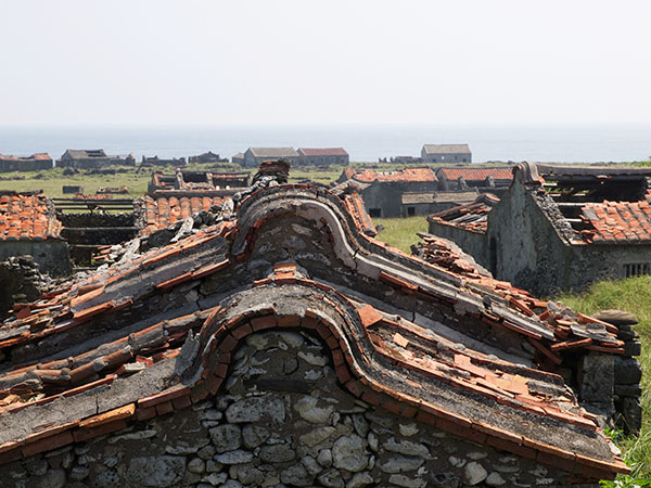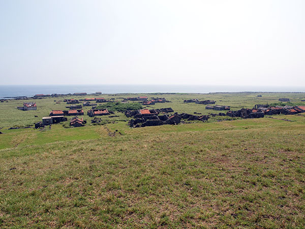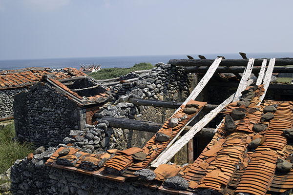 一上岸爬上制高點就是看到這景象,全村的屋頂都已經破損了,連廟的屋頂都塌了。