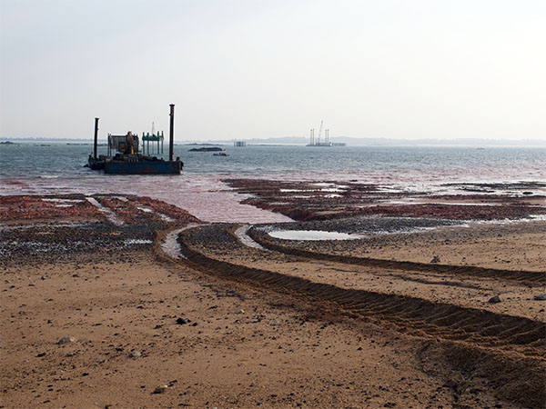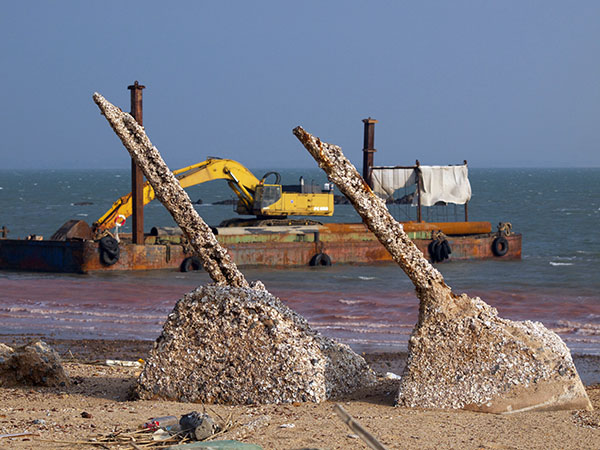 施工用的重機械就這樣直接在沙灘上輾過,甚至直接開過潮間帶。