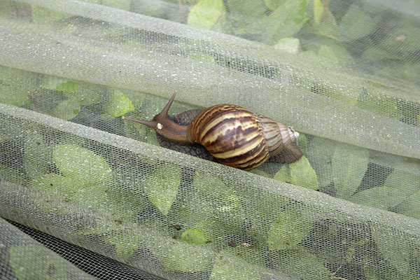 就在小彎嘴畫眉的鳴叫聲中,我看到這隻蝸牛。