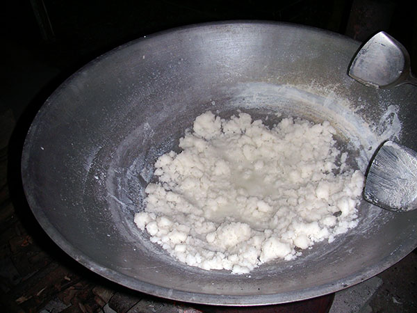 變成這樣子就可以攪動了,這個時候就開始一直炒一直炒,炒到天昏地暗。