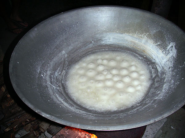 鹽巴變成火山狀之後就代表快要煮好囉!切記,不要攪動喔!!!