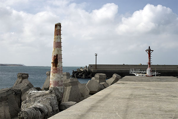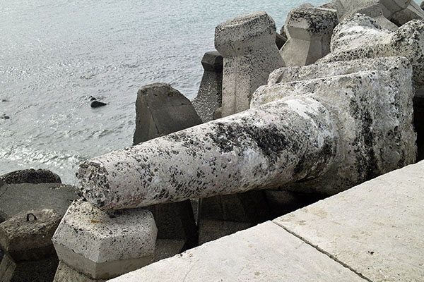 看看燈桿多盡責啊!!活的時候指引船隻回港正確的方向,掛掉了都還躺在那當消波塊。