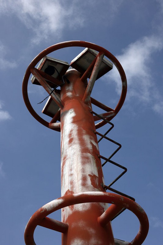 嗯嗯!第一根是港口對面的,第二根在港口這側紅色的,第三根就是損壞的那根紅白桿。