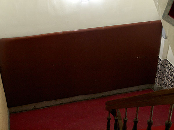 為了保護小孩子,所以在樓梯轉角處鋪上防撞墊,這樣小孩萬一滾下來也不會太嚴重。