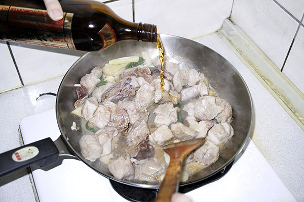 接著加入泡好的石鮔,然後開始加入一些紹興酒。