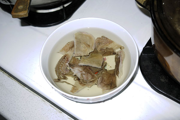 別忘囉!先將石鮔乾沖洗一下後就可以泡水了。
