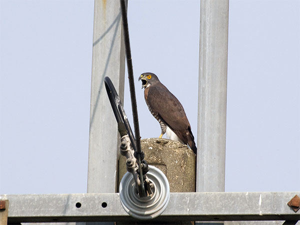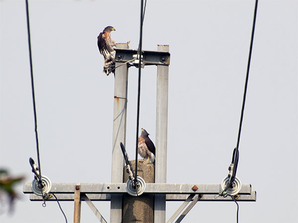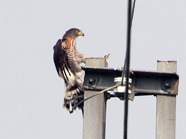這是非常湊巧的一次拍照經驗,本來只有一隻鳳頭蒼鷹停在電線桿上,