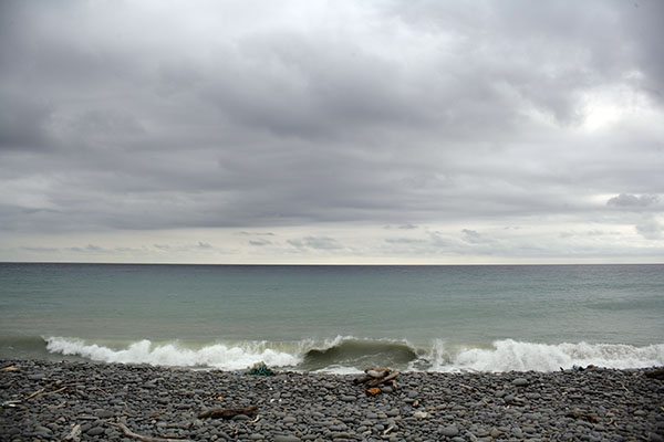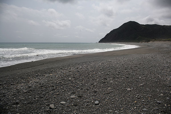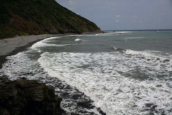 由美麗的南田石變成了小礫石和大岩塊混和的海岸線了。