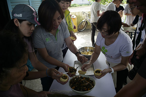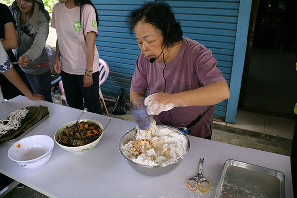 社區媽媽開始示範如何製作 WuWuMu 的外皮。