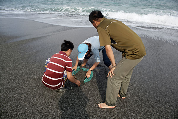 因應牠們覓食、棲地的特性,將小卷插在竹竿或鐵絲上,然後整個插入海灘裡。