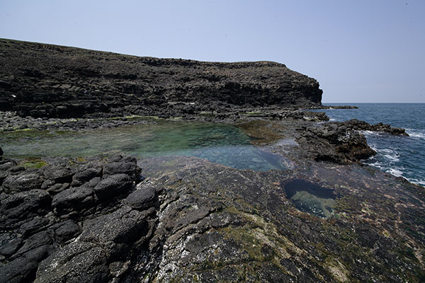 這就是西半邊的潮池。因為水流較緩,無法像東半邊的那樣有著美麗的切割。