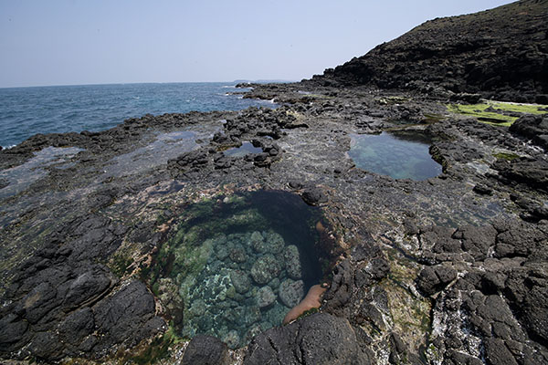 尤其是深深凹陷的潮池,不只是很深的凹陷,而且形狀非常的奇特。