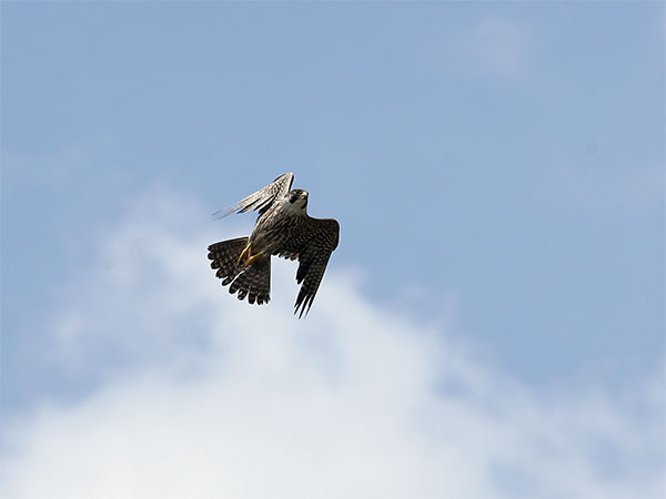 怎麼說要灑花呢?這隻應該是遊隼的亞成鳥吧?!感覺上玩心很重呢!