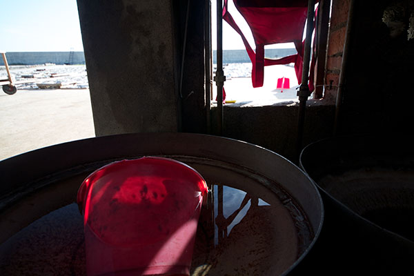 夕陽下長長的陰影告訴我們收取魚貨的時間到了。