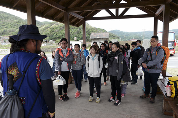 熱情的解說員正在解說保留區內的規定,比方說不可以帶石頭出來等等。