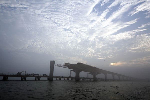 金門大橋原先預計在今年三月就要完工了,如今工程卻只有不到 40 % 的進度,