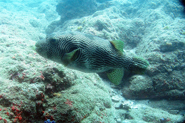 這尾叉鼻魨是昨天在澎湖海域拍到的,