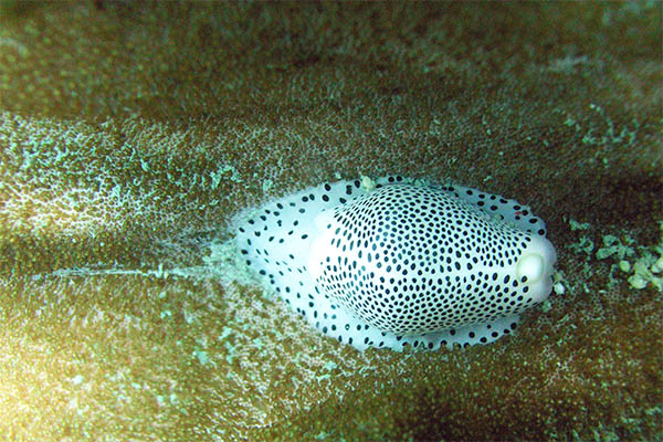 但不會像海兔螺吃成一塊一塊空白的樣子。