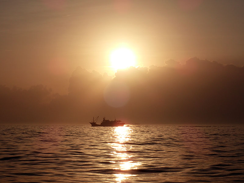 心想反正是出來做水下工作的,就沒有帶相機出門,誰知道在船上看到這麼美的夕陽。