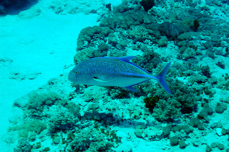 由於藍鰭鰺為獨行俠,較少群聚生活,因此只能偶而在礁石區發現。