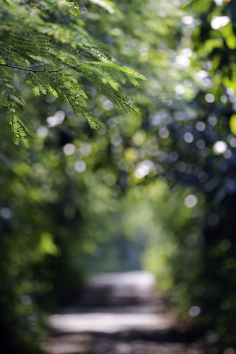 第三張就找一個近一點的樹葉對焦了,馬路上的光影幾乎都分不清楚了。