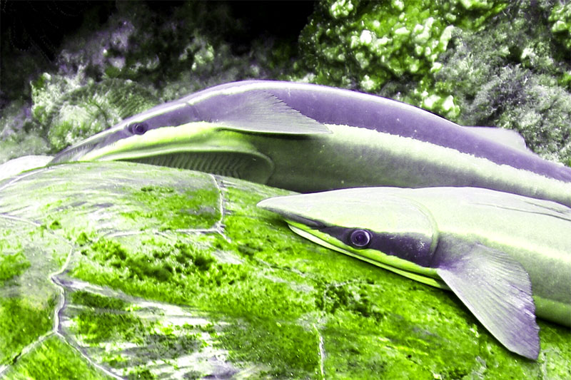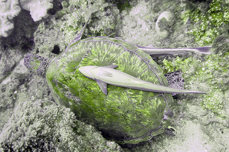 海龜背甲上的那兩尾魚就是鮣魚了,鮣魚可是出了名的搭便車之魚。