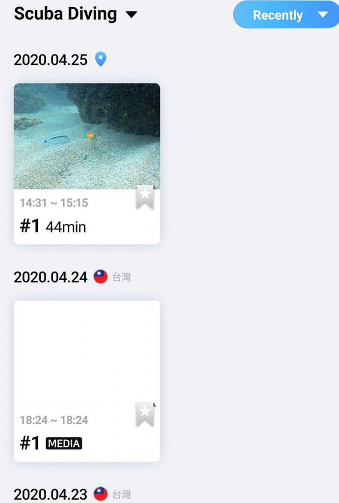 3、這是潛水日誌在手機程式上的頁面,會分日期、時間幫你排好。