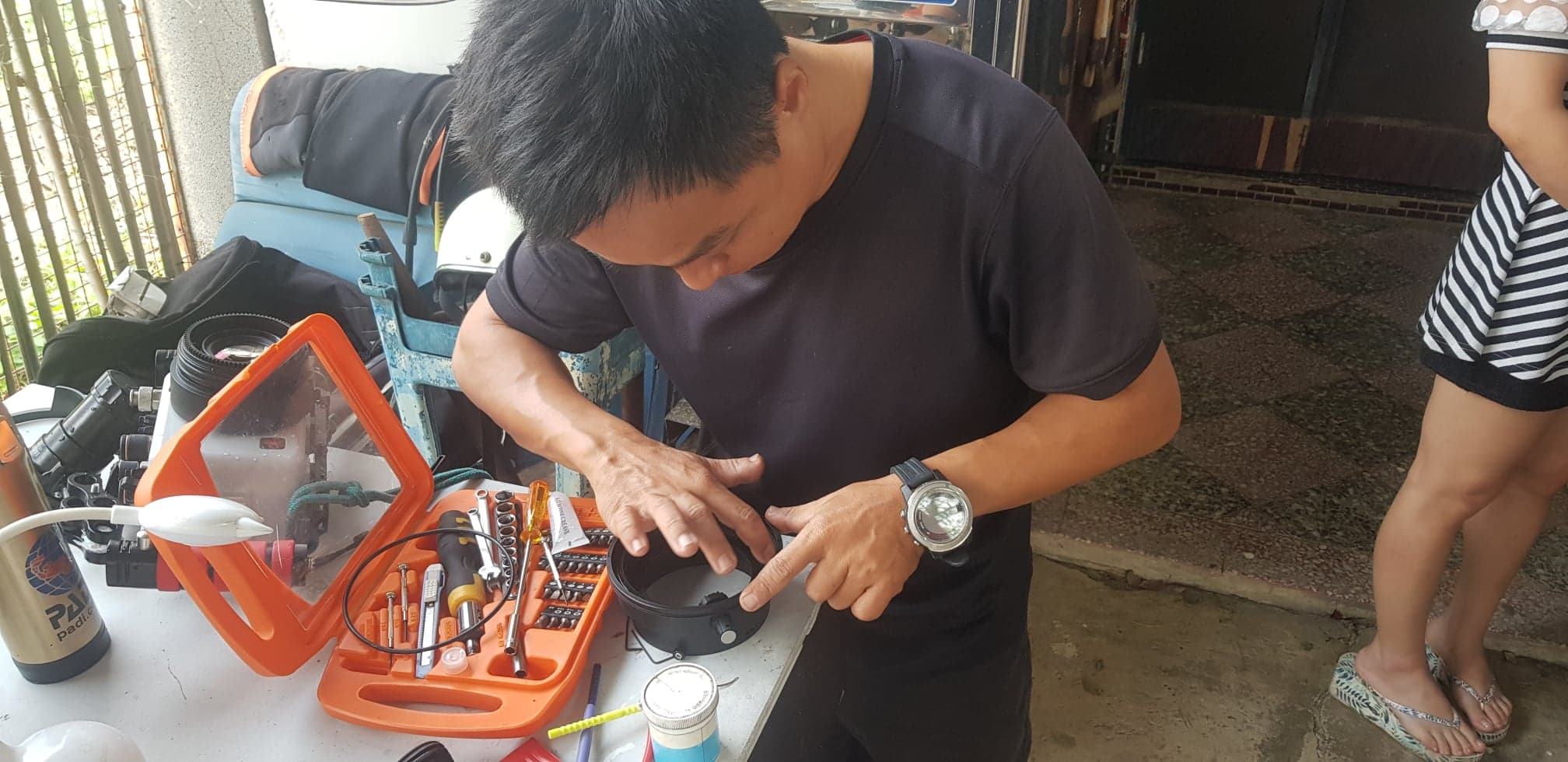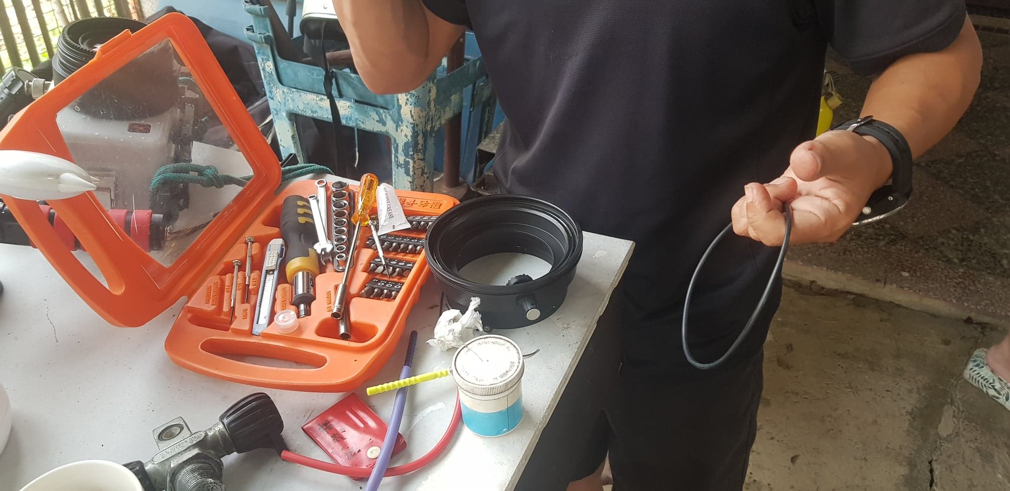 O-Ring 有毛髮沾粘通常是滲水的主因。本以為解決了,結果隔天下水 Port 又滲水了。