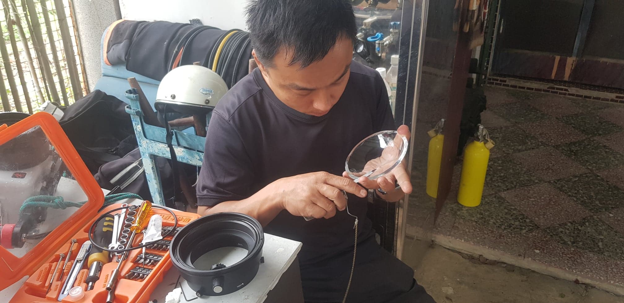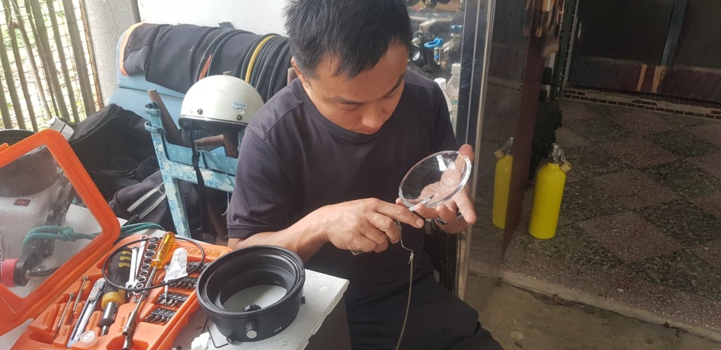 在水中仔細的看了看,發現好像是 Port 的鏡片處在滲水。