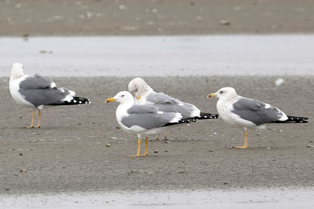 *銀鷗(蒙古)*嘉義布袋*剛好是黃腳,嘴喙紅色前有黑斑,銀鷗的蒙古亞種*