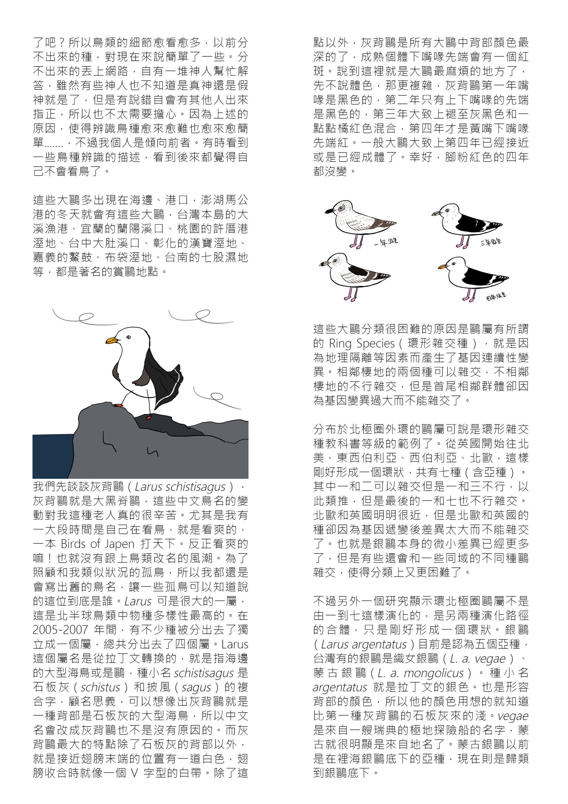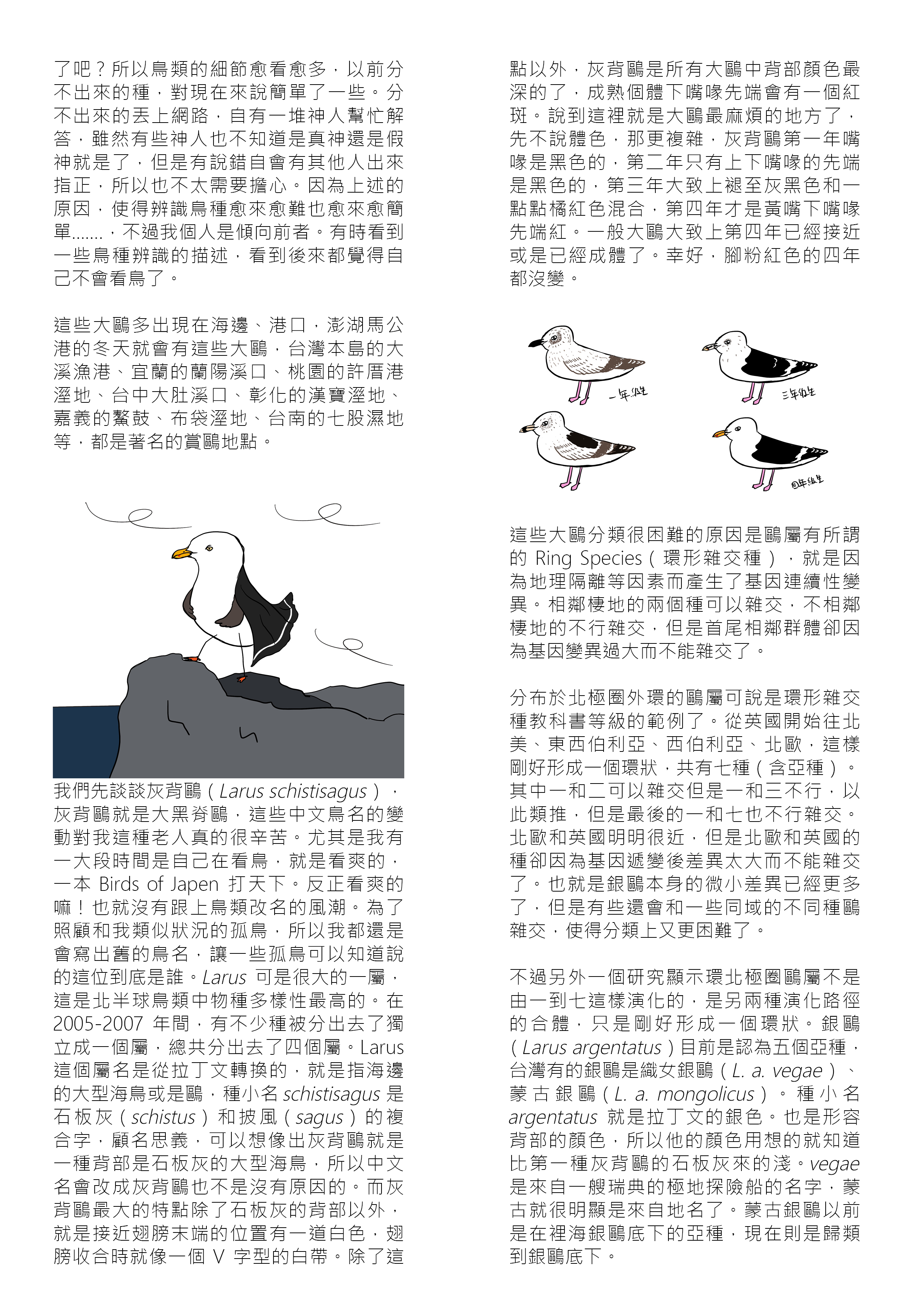 大鷗真的很難分,幸好台灣有超好心人士整理了不同齡這些大鷗羽色上的變化,