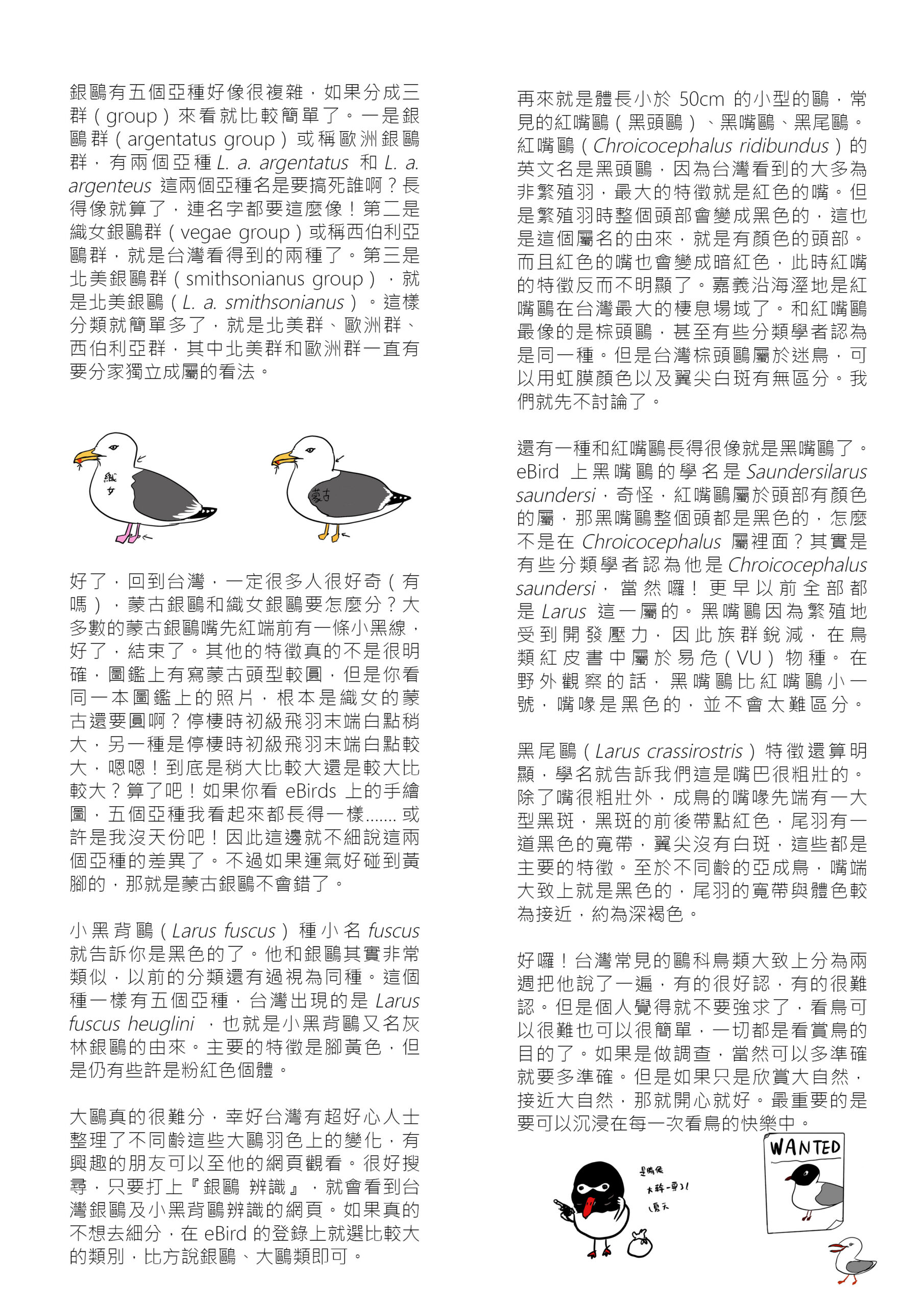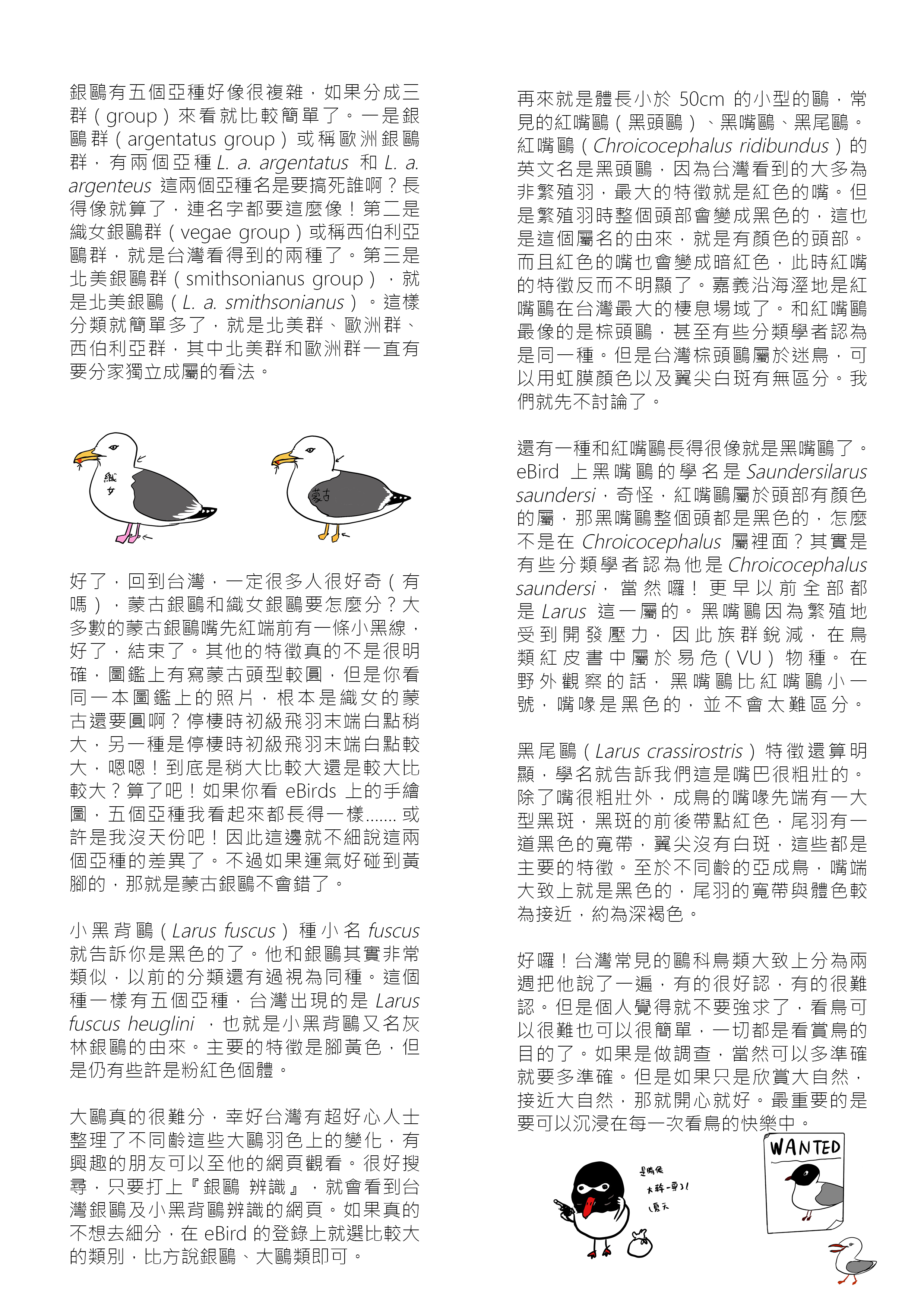 很好搜尋,只要打上『銀鷗 辨識』,就會看到台灣銀鷗及小黑背鷗辨識的網頁。