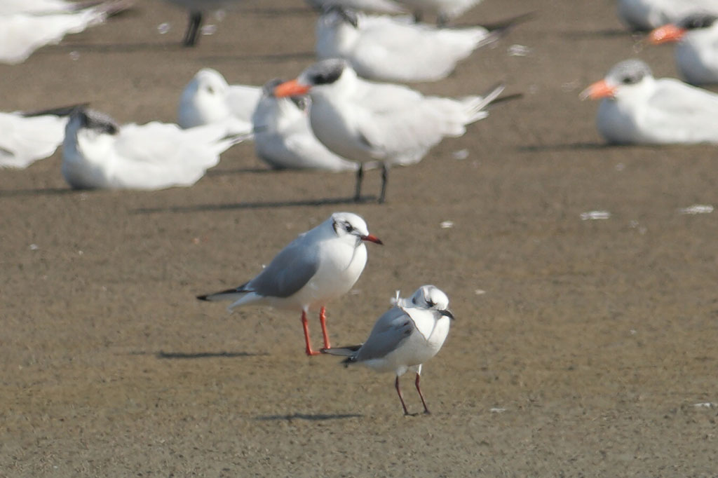 再來就是體長小於 50cm 的小型的鷗,常見的紅嘴鷗(黑頭鷗)、黑嘴鷗、黑尾鷗。
