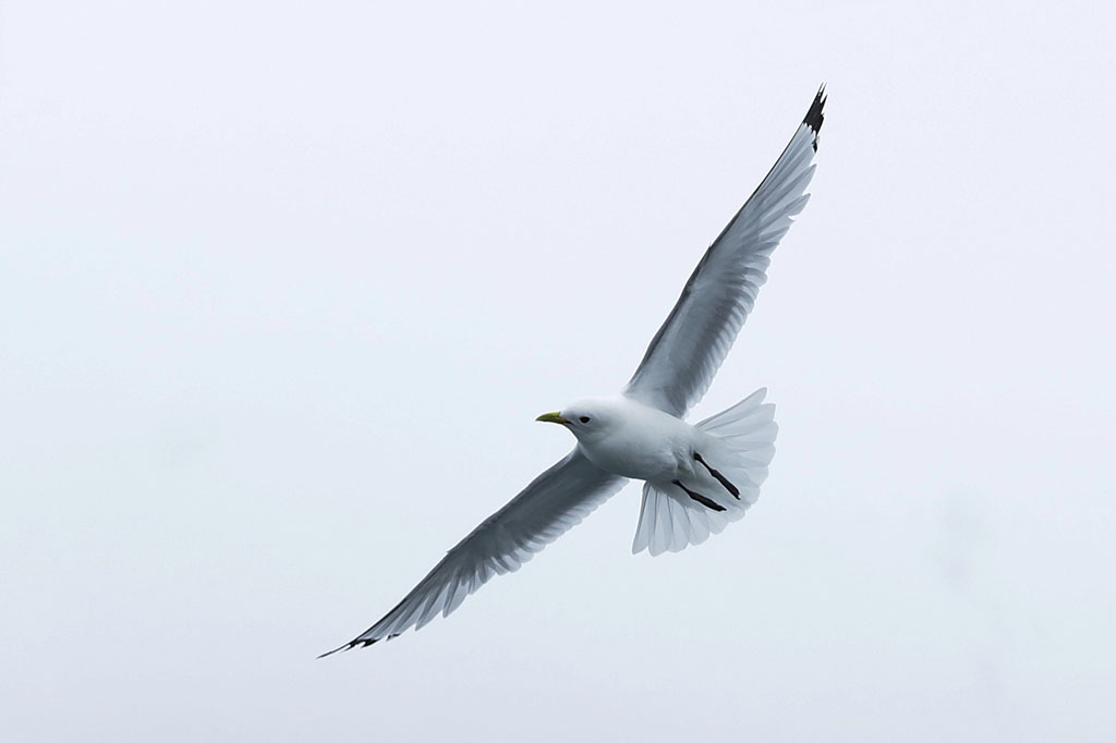三趾鷗(Rissa tridactyla)在台灣為稀有冬候鳥。學名就告訴我們他是黑色腳的三趾鷗。