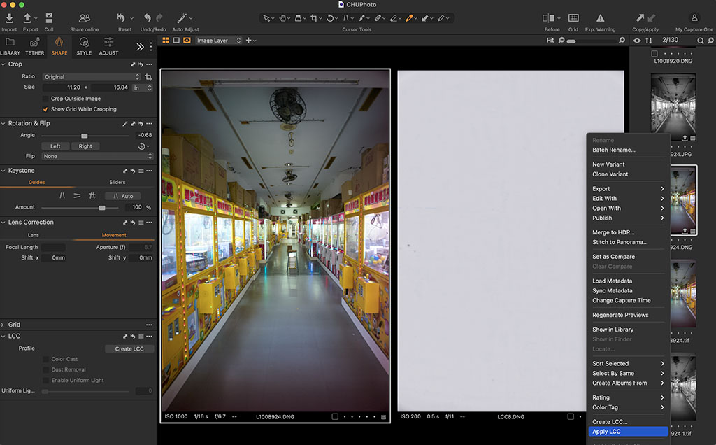 只好乖乖的研究一下 Capture One 裡面的 LCC 怎麼使用?