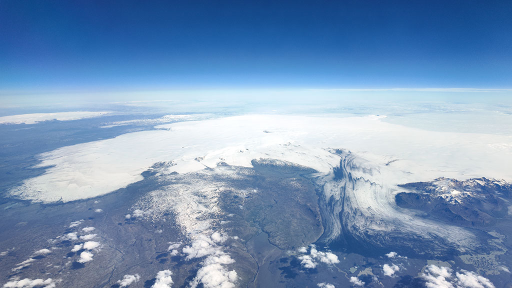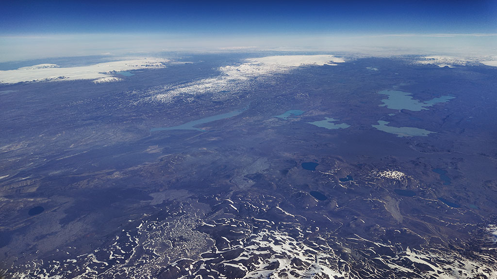 飛機繼續向西飛,往北上可以看三個冰原(冰帽、冰川)。
