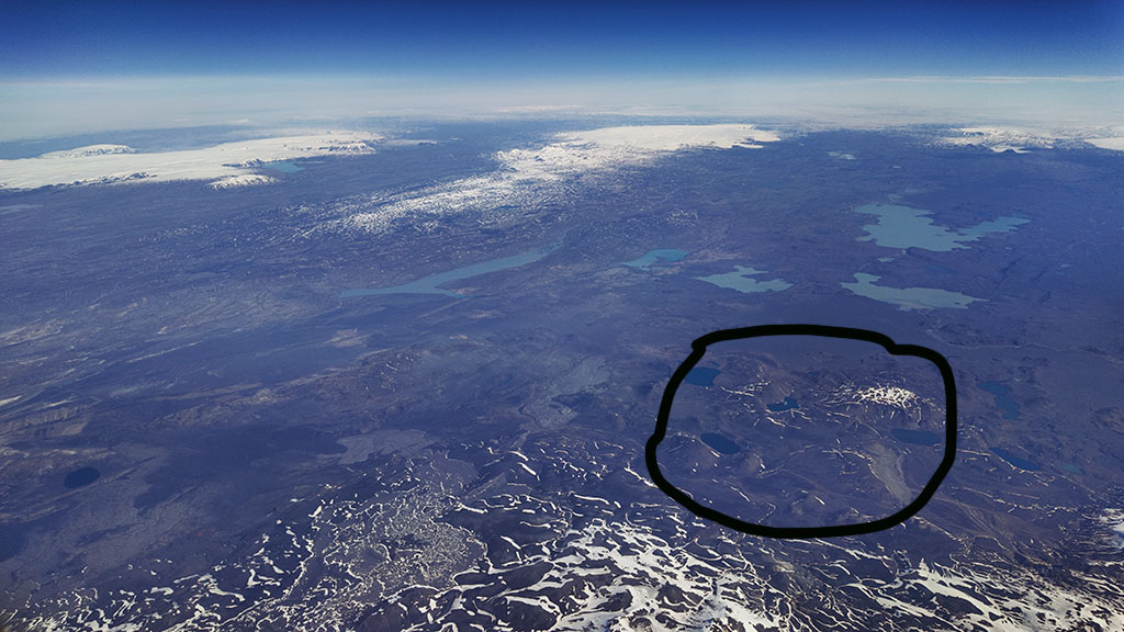 *圈起來的區域大致上就是 Fjallabak 自然保留區的範圍,彩色火山就是位於這個保留區內。這只是大概的示意圖喔!因為這是斜角空拍,所以比對上難免會有點出入*
