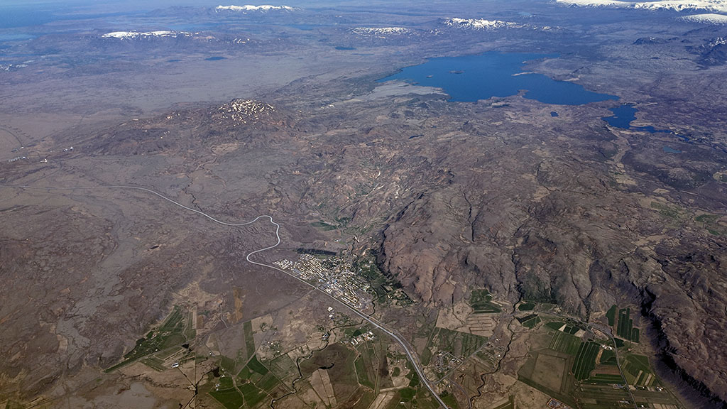 飛機繼續向西飛,就會看到一個大湖,那裡就是辛格韋德利國家公園(Þingvellir)。