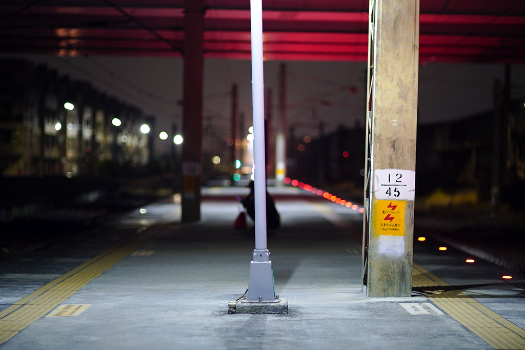 昨天的第一張就被嚇到了,晚上的後庄車站,光圈 1.2 全開。