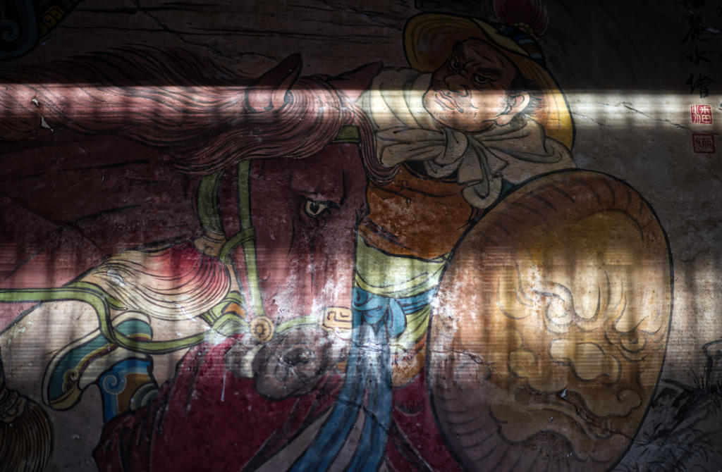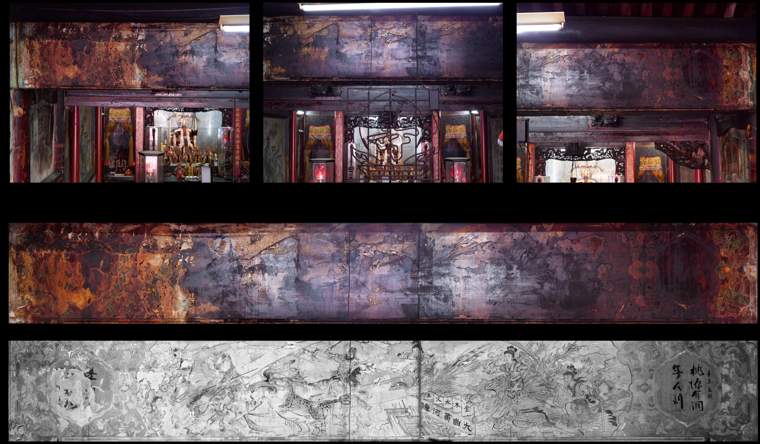 這張是分三次拍攝,因為該廟的香火鼎盛,所以這些彩繪都薰黑了,
