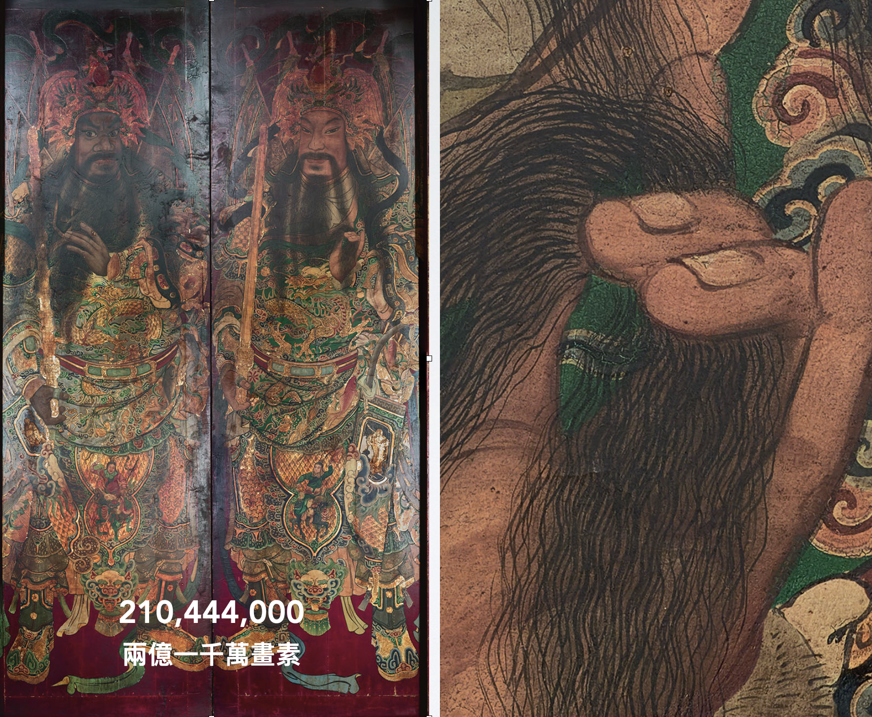 左側是用了8 張以上的 8000 萬畫素的數位機背部分重疊拍攝,