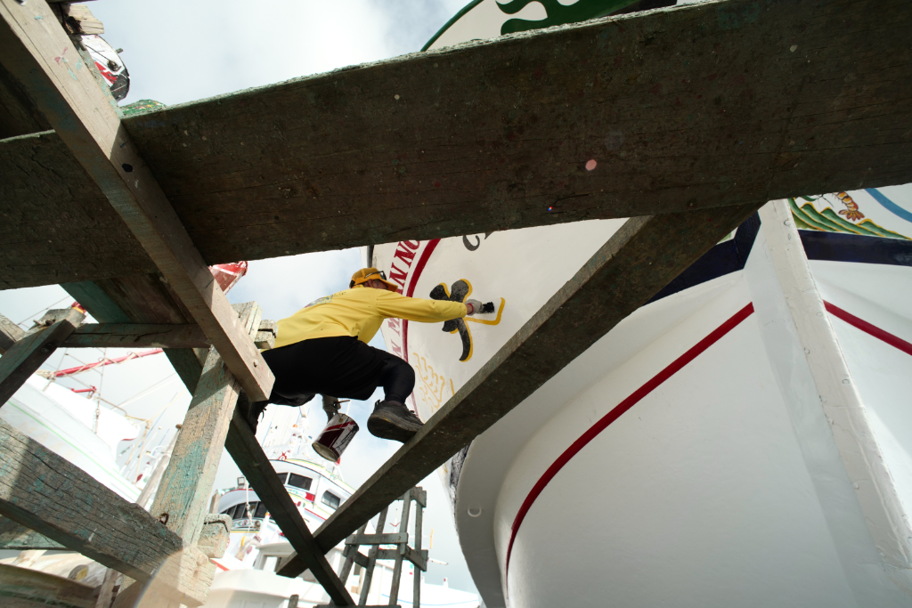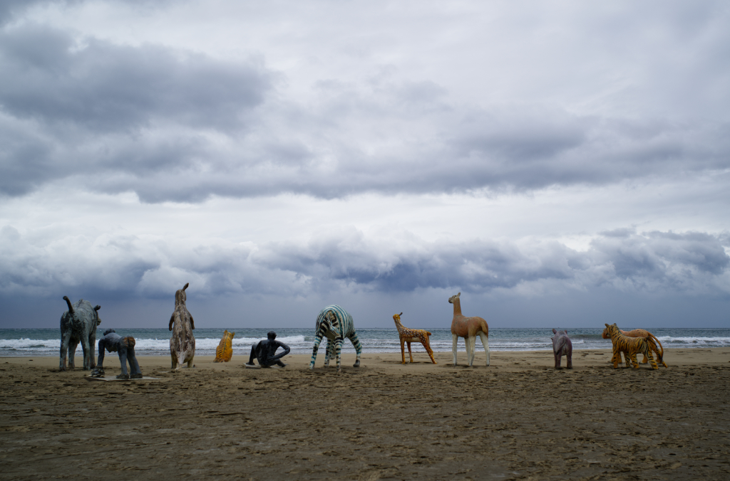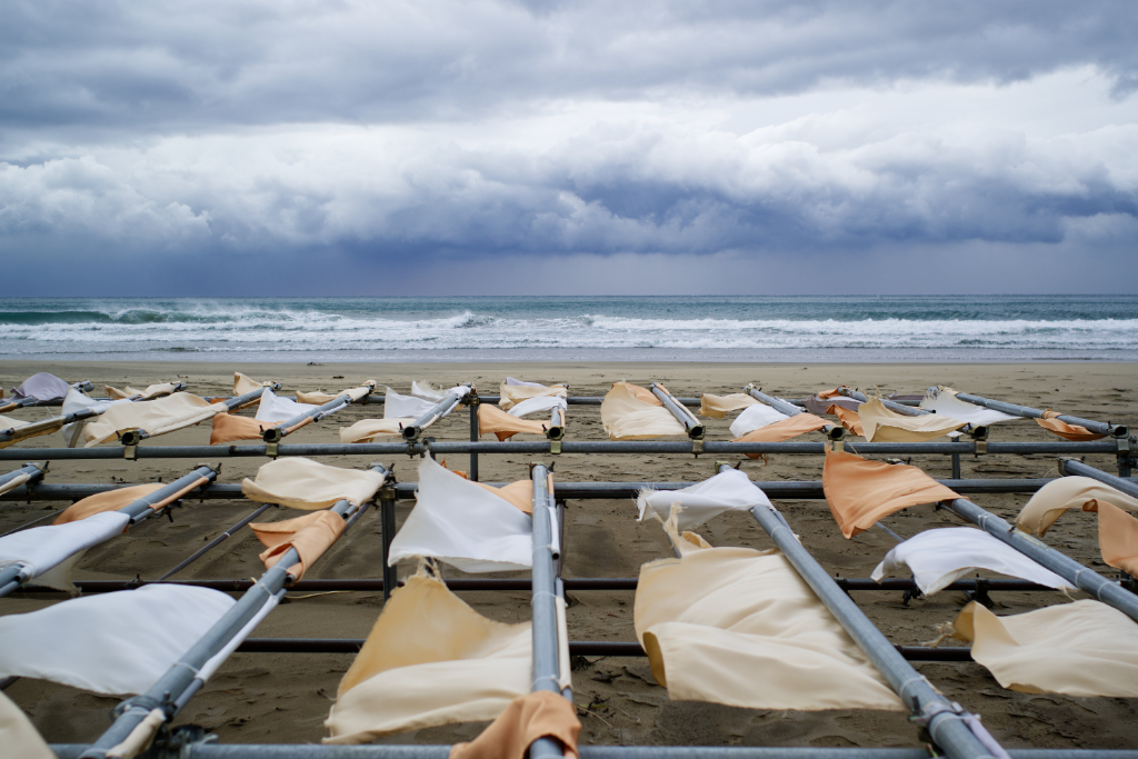 這是用洋蔥染色的布,在落山風的吹襲下發出很震撼的聲音。